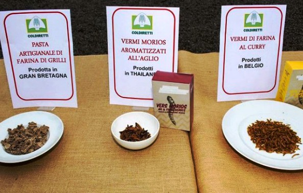 Un procent de 54% dintre italieni se opun noii legi, foarte puțini fiind de acord să mănânce insecte întregi . Coldiretti a lansat o alarmă față de această normativă pe timpul Formului Agriculturii și Alimentației, la Cernobbio. Astfel, a întins o masă pentru a prezenta noile mâncăruri care sosesc din întreaga lume: gândaci thailandezi, miriapode chinezești, viermi cu paprika.