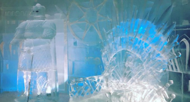 De asemenea, în hotel mai există un tobogan din gheață în formă de dragon, o replică din gheată a Tronului de Fier, păzit de personajul Muntele, precum și holul cu fete din Braavos, scrie Hotnews.