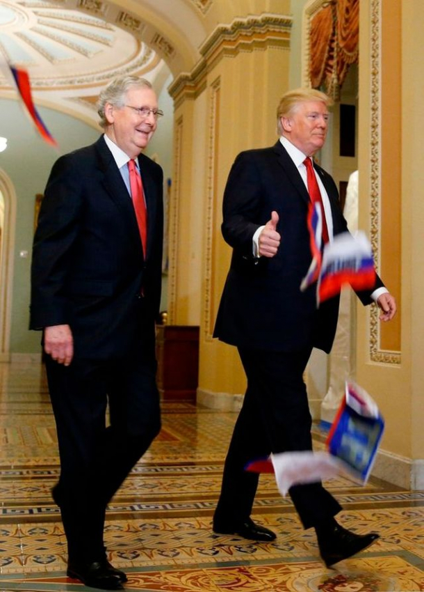 Protestatarul, membru al unei organizaţii neguvernamentale, a reuşit să se apropie la câţiva metri de Donald Trump, care era însoţit de liderul majorităţii republicane, şi a aruncat mai multe steaguri ale Rusiei spre preşedintele american.