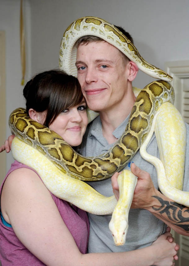 Cei doi tineri locuiesc împreună într-un apartament din Bulkington, Warks, Marea Britanie și au grijă de 53 de șerpi. Aceștia au mare grijă de șerpii lor și îi includ în toate activitățile lor zilnice. Mai mult, au un frigider numai pentru șerpi, plin cu șoareci și șobolani morți pentru a-i hrăni în fiecare zi.
