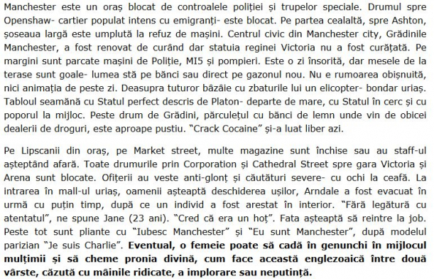 Ion Cristoiu prezintă aspecte din oraș de după atac cu ajutorul informațiilor primite de la Traian Horia, prietenul său din Manchester.