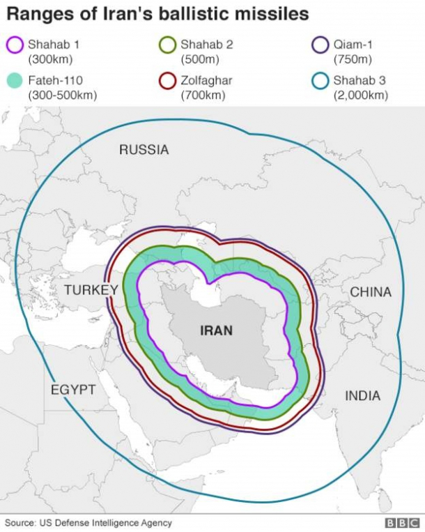 Acest lucru pentru că armata iraniană e dotată cu șase tipuri de rachete balistice Shahab 3 care dacă sunt lansate pot atinge, cel puțin în teorie, și țări precum Polonia, România, Ungaria, Bulgaria, Grecia ori Turcia.