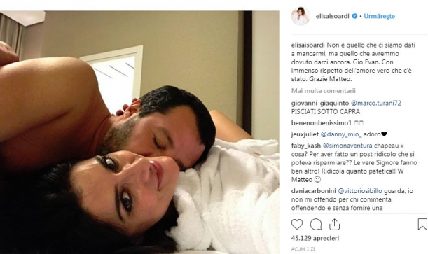 Vicepremierul italian Matteo Salvini s-a despărțit de iubita sa, prezentatoarea TV Elisa Isoardi. Anunțul a fost făcut chiar de femeie, pe Instagram, notează telegraph.co.uk.