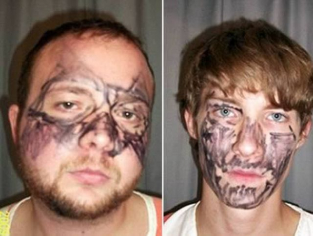 Alți doi infractori au încercat să spargă un apartament, însă ideea lor de a se deghiza nu a fost prea bine gândită. Aceștia și-au colorat fețele folosind marker permanent și pe baza descrierilor făcute de vecini, polițiștii i-au descoperit imediat.