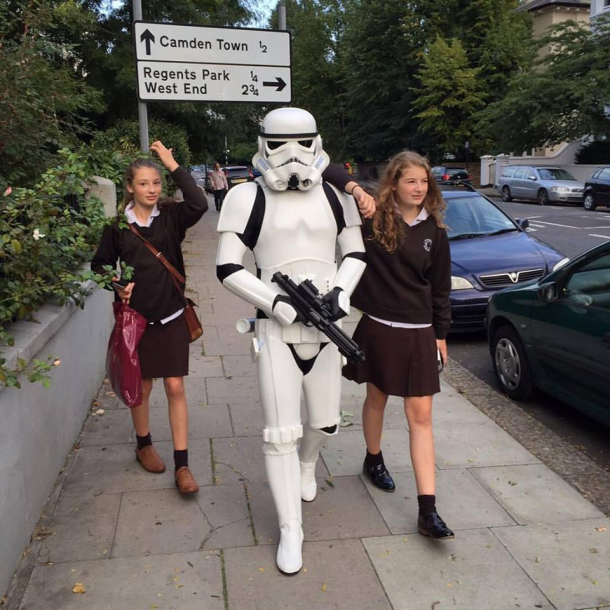Jamie Oliver, fan Star Wars: Celebrul bucătar și-a însoțit copilele la școală, îmbrăcat în soldat (FOTO)