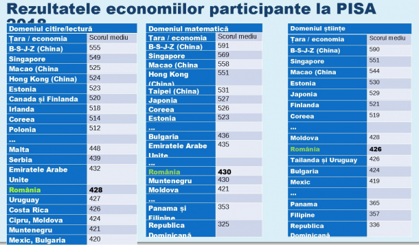 Publicarea rezultatelor de la testele PISA a prezentat marți un dezastru pentru sistemul de învățământ din România. Țara noastră are cele mai slabe rezultate din ultimii nouă ani la testele PISA la toate cele trei domenii testate (citire, matematică şi ştiinţe), iar analfabetismul funcțional a ajuns la 44% în rândul elevilor români.