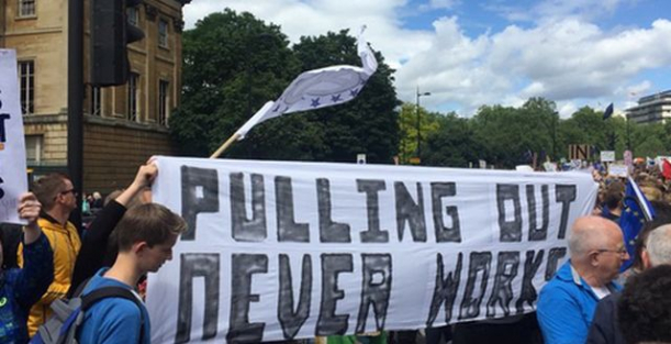 Mii de britanici au ieșit pe străzile din Londra pentru a își arăta opoziția față de votul din 23 iunie, când s-a decis ca Marea Britanie să părăsească Uniunea Europeană. Aceștia au drapele europene și pancarte cu diverse mesaje "Breverse"- anularea Brexitului, "Brexitul este o prostie" și "Campania 'leave' a mințit". S-au auzit scandări precum "Te iubim, UE".