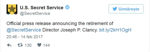 La puțin timp după demisia șocantă a lui Michael Flynn, consilierul lui Donald Trump,pentru securitate naţională, acum un alt membru important din Administrația Trump își anunță demisia. Este vorba despre Joseph Clancy, directorul Serviciilor Secrete.