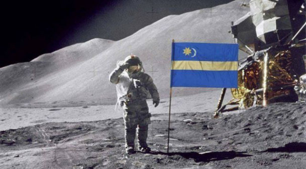 Drapelul galben-albastru este arborat ostentativ în diverse contexte, inclusiv pe… Lună.
