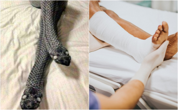 Femeia a adormit îmbrăcată într-o pereche de ciorapi cu imprimeu de șarpe, ceea ce se pare că a fost decizie extrem de proastă.