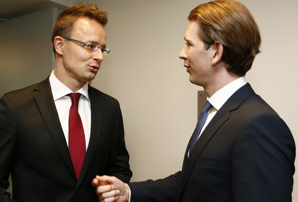 Foto: Ministrul de Externe al Ungariei, Péter Szijjártó (stânga), şi fostul cancelar al Austriei, Sebastian Kurz (sursa foto: Wikipedia / Bundesministerium für Europa, Integration und Äusseres)