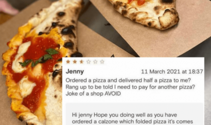 „Sperăm că ești bine! Ai comandat o calzone, ceea ce este o pizza «îndoită», de aceea ai primit-o așa”, i-au răspuns reprezentanții restaurantului.