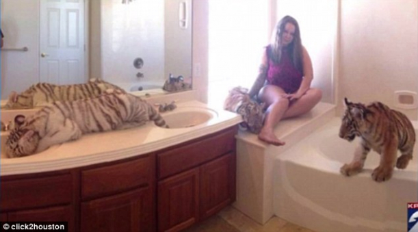 Trisha Meyer a fost arestată săptămâna trecută după ce poliţia a găsit în locuinţa ei din Houston, Texas, un tigru, o pumă, un sconcs, o vulpe şi mai multe maimuţe, potrivit DailyMail.