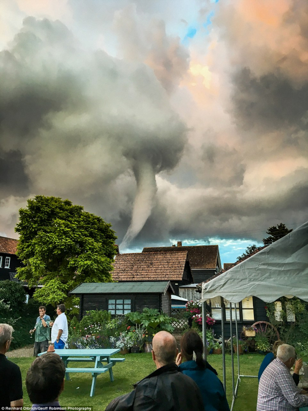 O tornadă și-a făcut apariția din senin în Marea Britanie, sâmbătă seara, în timp ce oamenii se relaxau în grădina unui bar din Thorpeness, Suffolk, potrivit Daily Mail.