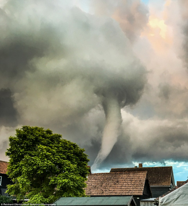 „A fost zăpuşeală ieri şi vremea schimbătoare, dar n-am mai văzut o tornadă în Suffolk înainte. Am fost uimiţi când Phil s-a întors şi ne-a arătat fotografia pe telefon", a declarat managerul restaurantului, Amy Youngs.