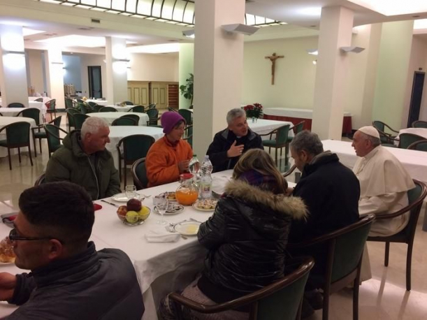 Două femei și șase bărbați de naționalități diferite care trăiesc pe străzi au avut ocazia să-i facă personal urări Papei Francisc de ziua lui de naștere. Ei au fost foarte surprinși atunci când, sâmbătă dimineață, au fost chemați să ia masa alături de Suveranul Pontif.