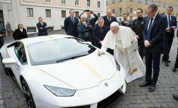 Francisc a primit un model de Huracán personalizat, neobișnuitul cadou fiindu-i prezentat papei la Vatican de către conducerea de la Lamborghini, parte a grupului german Volkswagen.