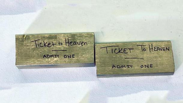Pe fiecare dintre ele scrie „Bilet spre Rai. Valabil pentru o singură persoană”.