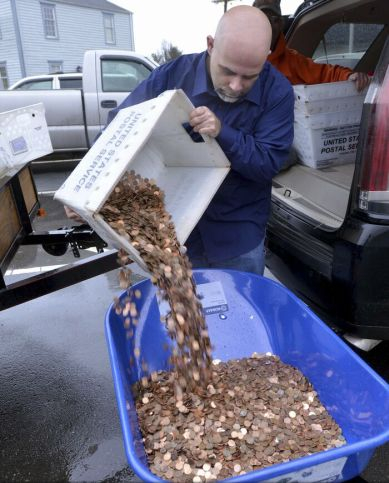 Nick Stafford din Cedar Buff, Virginia, s-a prezentat la ghișeu DMV cu atât de multe monede încât aparatele de numărat bani nu au putut face față, astfel încât funcționarii au avut nevoie de șapte ore pentru a efectua această sarcină și a încasa taxa. Ei au început miercuri seară să numere cele 298.745 de monede totalizând 2.987,45 dolari și au terminat la primele ore ale dimineții următoare.