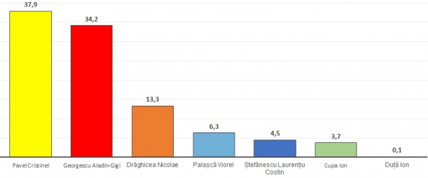 Spre exemplu, la votul politic pentru Primăria Drobeta-Turnu Severin, Daniel Olimpiu Cîrjan este cotat de sondaj cu 36,1% din voturile valabil exprimate, liberalul fiind urmat de social-democratul Marius Vasile Screciu (34,9%) și Constantin Gheorghe (20,9%), candidatul Pro România.