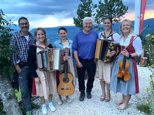Fotografia distribuită pe Internet îl arată pe președintele federal Frank-Walter Steinmeier, aflat în vacanță în Tirolul de Sud, la o întâlnire cu guvernatorul local Arno Kompatscher și cu un grup de muzicieni. Poza a fost realizată acum două săptămâni, pe 22 iulie. Cu toate acestea, acum provoacă o agitație – în special în rândul opoziției cu privire la politica privind pandemia de coronavirus a guvernului federal, scrie welt.de.