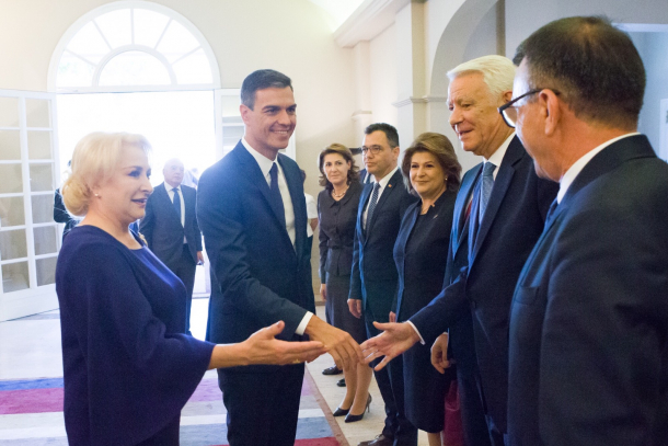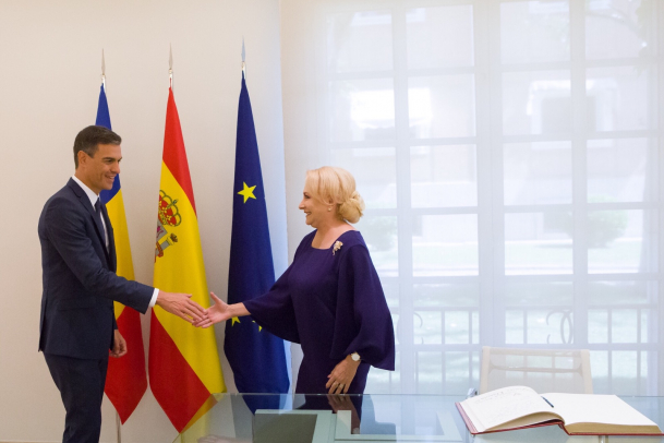 Viorica Dăncilă a fost primită joi de președintele guvernului Regatului Spaniei, Pedro Sánchez, la Palatul Moncloa, reședința oficială a premierului spaniol.