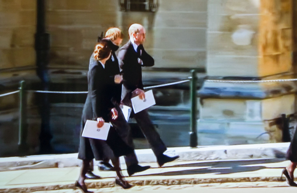 În procesiunea care a avut loc înainte ca sicriul cu trupul ducelui de Edinburgh să fie dus la capelă, Prinţii William şi Harry nu au mers umăr la umăr, între ei fiind așezat vărul lor, Peter Philips.
