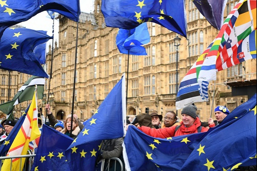 Foto: Protestatari anti-Brexit în fața parlamentului britanic, în ziua în care a fost respins şi al doilea acord (sursă foto: hepta.ro)