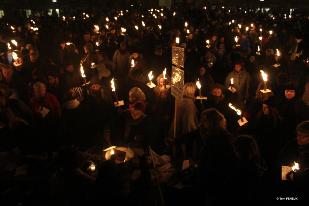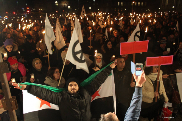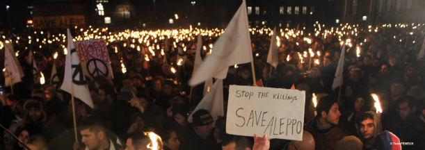 Pe o scenă improvizată au urcat vorbitori ce purtau banderole pe care scria "Salvaţi oraşul Alep" şi "Opriţi masacrul". Manifestaţia a fost organizată de Asociaţia daneză pentru cooperare internaţională şi militanta siriană pentru drepturile omului Haifa Awaad. Autorităţile daneze au estimat că la protest au luat parte între 5.000 şi 7.000 de persoane, anunță Agerpres.