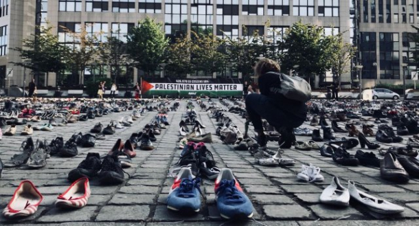 Organizația a pus pantofii, în semn de protest, pentru fiecare palestinian și israelian ucis în ultimii 10 ani și cere Uniunii Europene și Națiunilor Unite să impună sancțiuni Israelului pentru violențele care au loc în Palestina, informează Digi24.