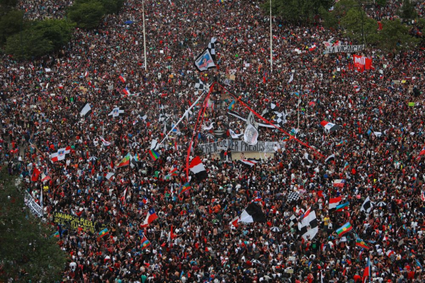 Protestele au început în Santiago ca o mișcare a tineretului, iar studenții rămân nucleul dur al manifestațiilor. Dar odată ce mișcarea a ajuns în afara capitalei, cetățeni de toate vârstele și toate categoriile sociale s-au alăturat. Majoritatea protestelor au fost pașnice dar au fost și izbucniri marcate de jafuri și incendieri asupra supermarketurilor, stațiilor de metrou, clădirilor guvernamentale și asupra sediului principalului ziar conservator.