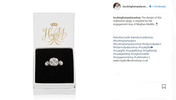 Magazinul Regal al Palatului Buckingham a scos la vânzare o nouă colecţie de bijuterii care include inelul de logodnă al Ducesei Meghan Markle, „Buckingham Palace Statement Ring”, potrivit adevarul.ro.