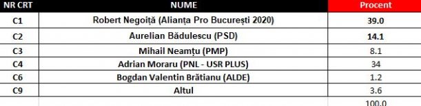 Robert Negoiță a câștigat detașat alegerile din Sectorul 3, așa că va mai rămâne patru ani la Primărie, arată exit-poll-ul CURS-Avangarde realizat la ieșirea de la urne. Pe locul doi în preferințele electoratului din Sectorul 3 a fost social-democratul Aurelian Bădulescu. Acesta a obținut 14,1% din voturi, arată datele aceluiași exit-poll.