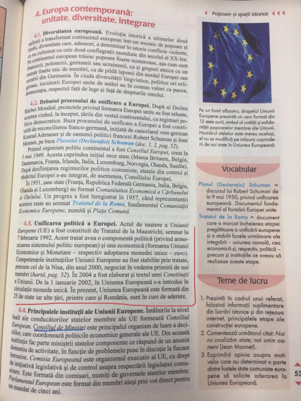 România, în afara Uniunii Europene (UE) în manualul de istorie (FOTO)