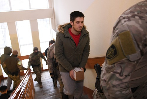 Foto: Marinari ucraineni în timp ce sunt aduși în instanţa de judecată (sursă foto: hepta.ro)