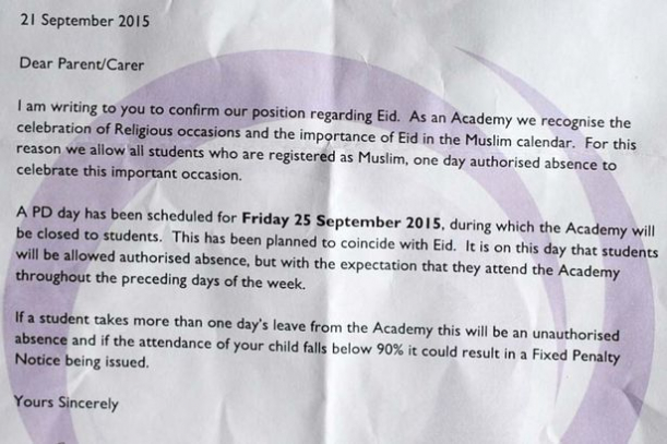 Profesorii unei școli din Middlesbrough, din cadrul Acklam’s Outwood Academy au refuzat să ofere o zi liberă unor elevi musulmani cu ocazia unei sărbători religioase islamiste care are loc în întreaga lume, Eid al-Adha (Sărbătoarea Sacrificiului), anunță gazettelive.co.uk