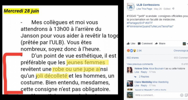 Universitatea Liberă din Bruxelles a stârnit controverse pe rețelele sociale după ce și-ar fi încurajat studentele să poarte decolteuri drăguțe la ceremonia de absolvire, fapt care a provocat un adevărat scandal în cadrul Facultății de Medicină a Universității Libere din Bruxelles.