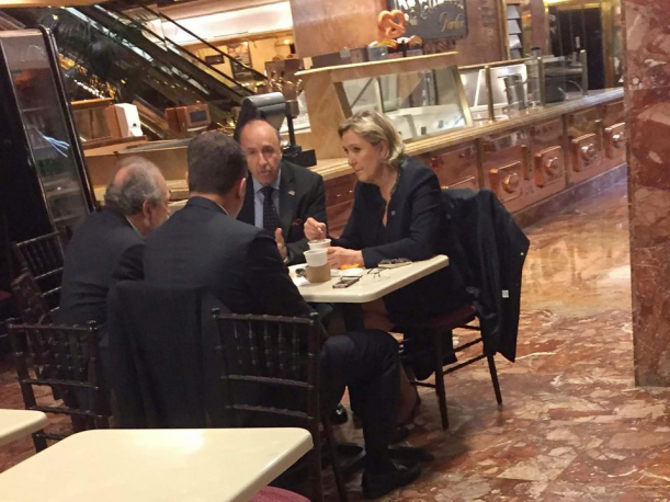 Le Pen a fost importalizată într-o fotografie făcută de un angajat de la Trump Tower în New York, reședința președintelui ales al SUA, Donald Trump, scrie liberation.fr.