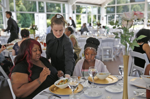 Imediat s-a gândit la oamenii străzii și a decis să invite o parte dintre aceștia pentru a se putea bucura măcar ei de petrecerea sa de nuntă. Aproximativ 170 de persoane au fost aduse la restaurant.