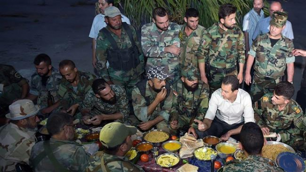 Siria: Președintele Bashar al-Assad a luat cina de Iftar împreună cu soldații din trupele guvernamentale care luptă împotriva grupărilor teroriste (FOTO)