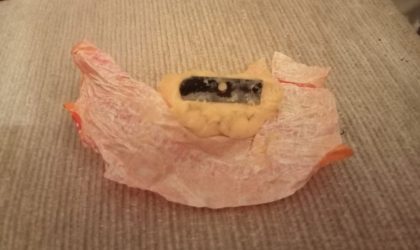 Odată ce ambalajul a fost îndepărtat, femeia a fost îngrozită să descopere că în bomboană era de fapt o lamă ascunsă.