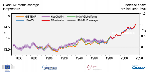 Datorită gazelor cu efect de seră, anul 2018 a fost al patrulea cel mai cald an, în 2020 urmând a se înregistra noi temperaturi record, se arată într-un studiuconceput decercetătorii din cadrulserviciului privind schimbările climatice al Uniunii Europene,Copernicus.