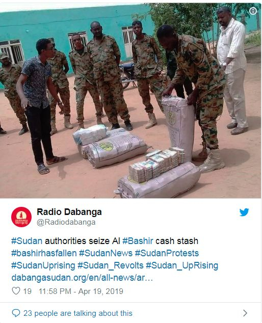 Descoperire incredibilă a serviciilor de securitate din Sudan! La o percheziţie efectuată la reşedinţa dictatorului Omar al-Bashir, înlăturat din funcţie pe 11 aprilie, aceştia au descoperit sume de bani în euro, dolari sau lire sudaneze ce totalizează peste 100 de milioane de euro.