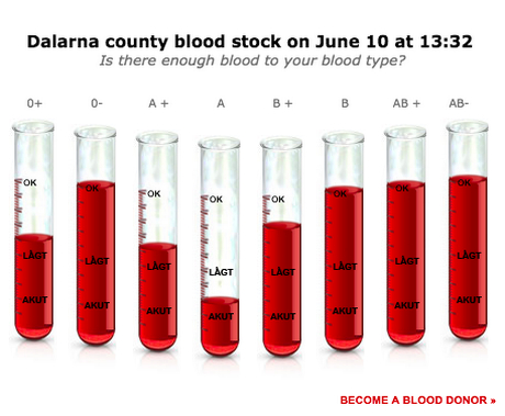 De asemenea, locuitorii din Stockholm pot să vadă, pe site-ul lor, un grafic live cu cât sânge mai este disponibil.