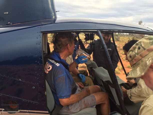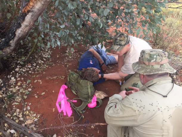 Mergând pe urmele lăsate în nisip, poliția a reușit să-l găsească pe vânător sprijit de un copac, într-o stare de sănătate proastă.
