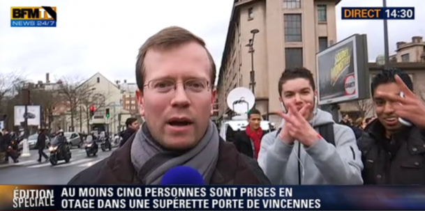 Un moment uluitor s-a petrecut în timpul unei transmisiuni live realizate de un reporter francez, în apropierea locului unde mai multe persoane au fost luate ostatice, într-un magazin alimentar din cartierul parizian Porte de Vincennes.