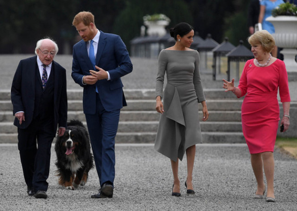 Meghan a făcut însă paradă în timpul vizitei oficiale din Irlanda. Una dintre ţinute, o pereche de pantaloni cu un sacou negre, aparent simplă, a costat 4.900 de euro. La venire, ea a purtat haine semnate tot Givenchy de 2.000 de euro, accesorizate cu o geantă de 650 de euro. La o altă întâlnire cu premierul irlandez şi sotia sa, Meghan a ales o rochie de la Roland Mouret de 2000 de euro, o geantă Fendi de 4000 de euro, pantofi de 500 de euro şi cercei Birks de diamant care au costat 10.000 de euro.