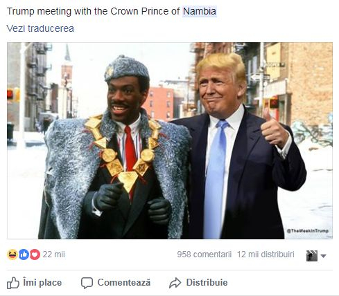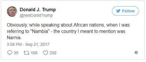 Președintele Donald Trump a elogiat generos sistemul sanitar din „Nambia” în timpul discursului său la ONU. Problema este că Nambia nu există. Casa Albă a precizat ulterior că Trump se referea la Namibia, dar era prea târziu, fiindcă furtuna de reacții pe rețelele sociale nu a întârziat să apară.