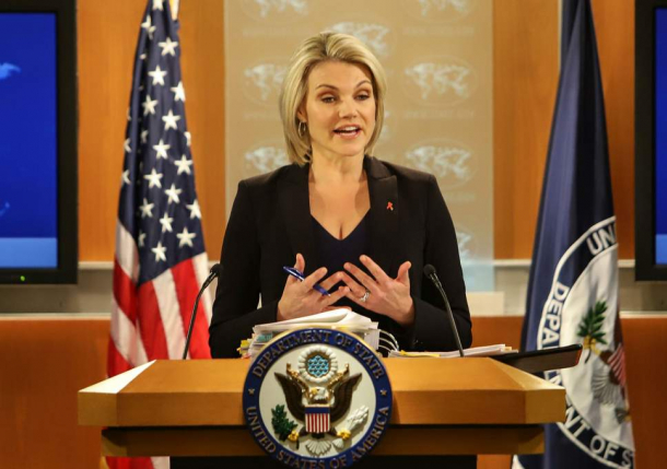 Heather Nauert a deţinut până în prezent funcția de purtător de cuvânt al Departamentului de Stat în aprilie 2017, fiind prima sa funcție guvernamentală. Înainte de calităţile oficiale, aceasta a fost corespondent și prezentator pentru postul american de televiziune Fox News.
