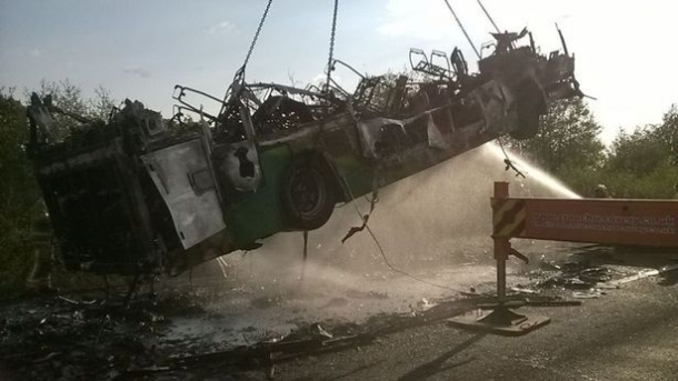 „Când au ajuns, paramedicii au văzut un autobuz etajat ars complet”, a declarat un reprezentant al serviciului de ambulanță.